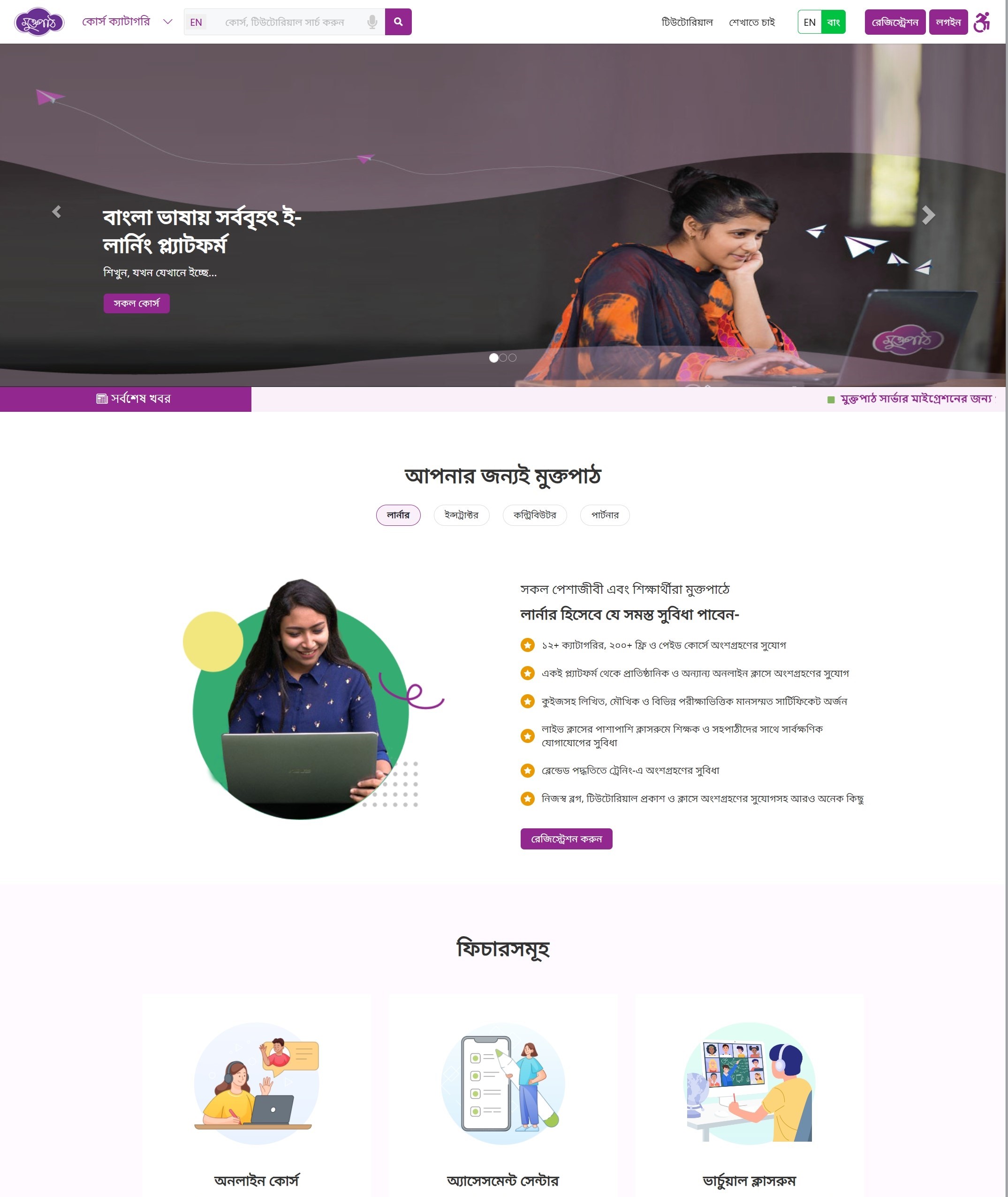 Muktopaath (www.muktopaath.gov.bd) is a whole of government e-learning platform where different government agencies (Ministries, Directorates, PIB, BEDU, Bangladesh Police Staff College, BMET, etc.) publish their online courses and conduct different training programs to build up the capacity inside the government through this platform as a partner. Right now, there are approximately 50+ government organizations actively working with the Muktopaath platform and facilitating 1.5M+ users across the country.